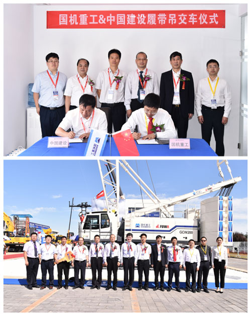 9月20日上午,國機(jī)重工與中國建設(shè)履帶吊交車儀式在BIECS 2017國機(jī)重工展位舉行。國機(jī)集團(tuán)副總經(jīng)理曾祥東,集團(tuán)公司董事長、黨委書記吳培國、國機(jī)集團(tuán)裝備制造事業(yè)部總監(jiān)趙飛,中國建設(shè)副總經(jīng)理?xiàng)顐髁肌⒍耪x,撫挖重工董事長徐楗元等出席交車儀式。