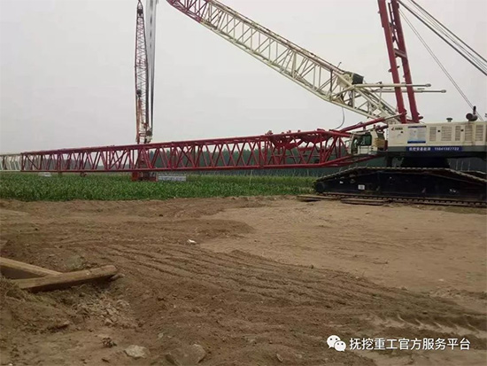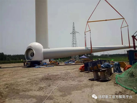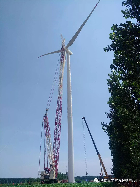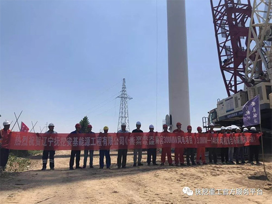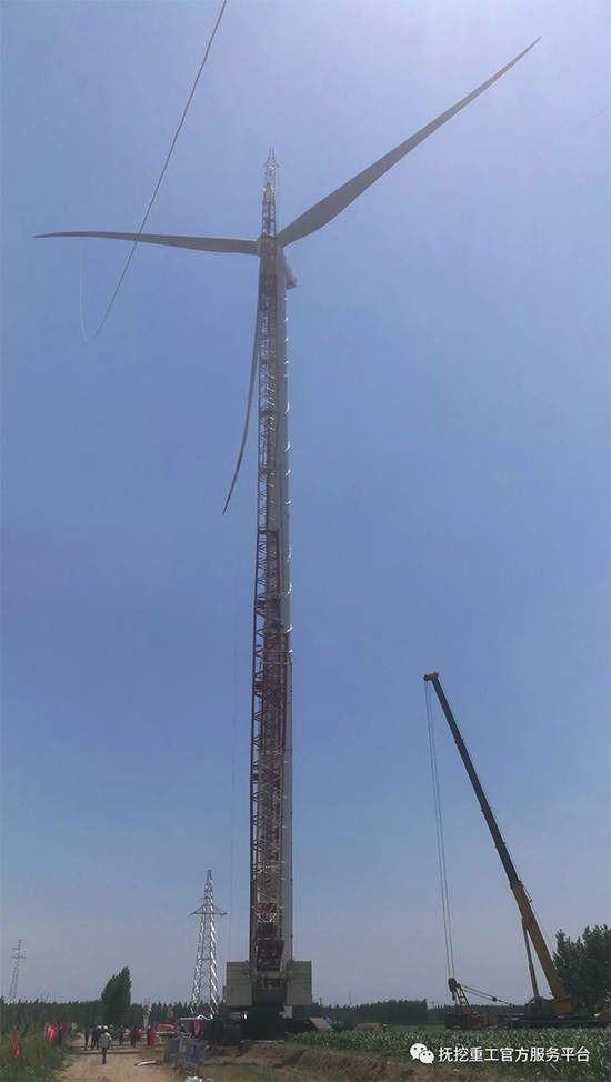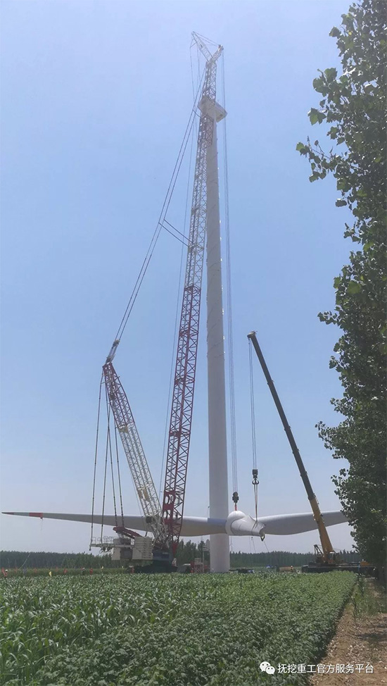 遼寧撫挖安基能源工程有限公司在北京航天·貴州電建 南宮300MW風(fēng)電場(chǎng)項(xiàng)目施工中,于2019年7月3日在河北省邢臺(tái)市南宮市完成首臺(tái)單機(jī)容量3.0MW、輪轂中心高度104米的風(fēng)機(jī)安裝,這既是我公司首臺(tái)高度更高 、重量更大 的3.0MW-140米風(fēng)機(jī)安裝,也是目前為止風(fēng)機(jī)廠家-金風(fēng)科技的 3.0MW-140米柔塔風(fēng)機(jī)批量吊裝施工的開始,為遼寧撫挖安基能源工程有限公司在風(fēng)電施工領(lǐng)域填寫輝煌的一筆。
